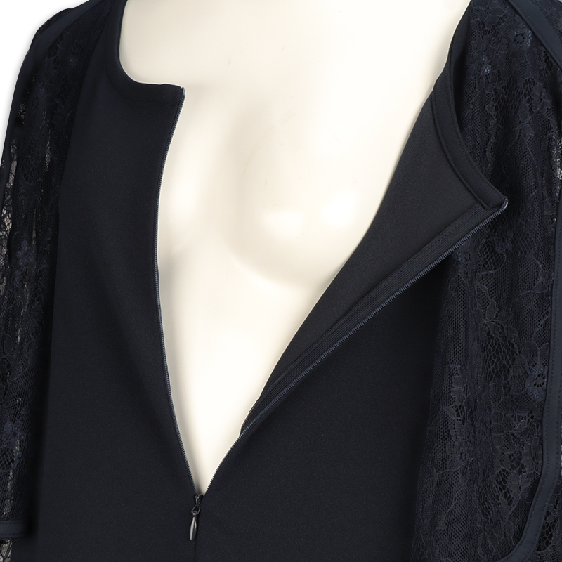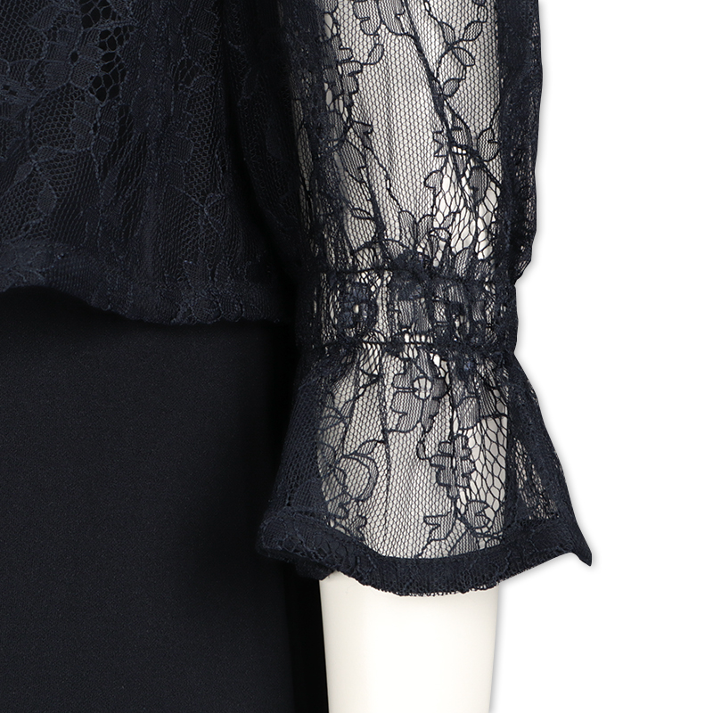 ●素材= 本体 ポリエステル95% ポリウレタン5% レース部分 ナイロン100% ●洗濯表示=液温は40度を限度として手洗いによる洗濯処理ができる。漂白処理はできない。タンブル乾燥は禁止。日陰での吊り干しがよい。底面温度120度を限度としてスチームなしでアイロン仕上げができる。石油系溶剤又はデカメチルペンタシクロシロキサンによる弱い操作でのドライクリーニングができる。非常に弱い操作によるウエットクリーニングができる。 ●サイズスペック=[M]身幅47.5 着丈113 肩幅35.6 袖丈41 裾巾79.4 [L]身幅49.5 着丈115 肩幅36.6 袖丈42 裾巾78.7 ●対象期間=産前~産後