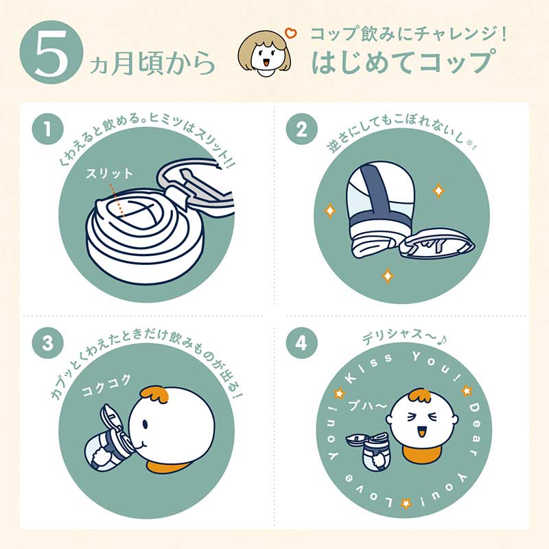 ●対象月齢:5ヵ月頃~ ●ボトル容量:240ml ●食洗器OK ※業務用食洗機を除く。 ●除菌・消毒(煮沸・電子レンジ・薬液)OK ●主要素材 キャップ:ポリプロピレン・熱可塑性エラストマー アダプター・ハンドル・ボトル:ポリプロピレン 飲み口・インナーストロー:合成ゴム(シリコーンゴム)