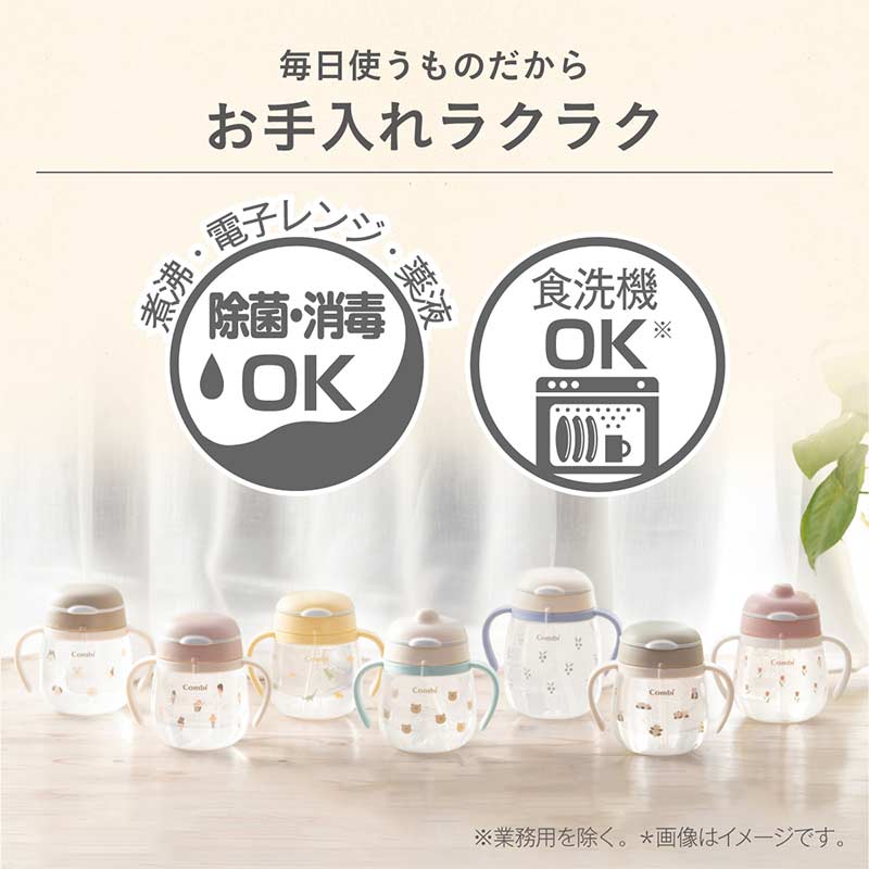 Lakumagu(ラクマグ)は日々のくらしを彩り、楽しみが広がるコンビの日本製マグシリーズ。 自 然と楽に使えることへのこだわりと、健やかな成長への想いをカタチにしました。 ストローマグの理想形。ふっくら形状のストローと漏れない構造で、くわえやすく、いつでもどこでもゴクゴク飲める。 340mlラージボトル。 落ち着いた色合いで、大人もキュンとするかわいらしいデザインが登場。 ●ベビーハンドル:ななめだから飲みやすい。 ●Wラクピタ構造:印が合うところまで閉めればOK。キャップもピタッと閉じるのでダブルで漏れを防ぎます。 ※漏れないとは誤使用、経年劣化による場合などを除く。 ●独自のパッキンレ ス構造:口元のパーツとパッキンがひとつになっているので、付け忘れによる漏れの心配がなく、食洗機OKなのでお手入れもカンタンです。 ●ふき出し防止弁:キャップを閉じると弁をふさぎ、キャップを開けると空気を逃がすコンビ独自の構造でストローからの漏れを防ぎます。 ●ナナメのインナーストロー:ボトル内のインナーストローは自 然にナナメになり、飲みものが少なくなっても、最後まで飲みやすい。