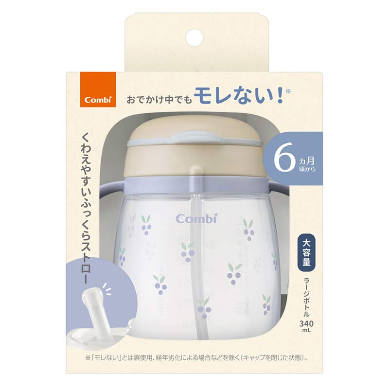 Lakumagu(ラクマグ)は日々のくらしを彩り、楽しみが広がるコンビの日本製マグシリーズ。 自然と楽に使えることへのこだわりと、健やかな成長への想いをカタチにしました。 ストローマグの理想形。ふっくら形状のストローと漏れない構造で、くわえやすく、いつでもどこでもゴクゴク飲める。 340mlラージボトル。 落ち着いた色合いで、大人もキュンとするかわいらしいデザインが登場。 ●ベビーハンドル:ななめだから飲みやすい。 ●Wラクピタ構造:印が合うところまで閉めればOK。キャップもピタッと閉じるのでダブルで漏れを防ぎます。 ※漏れないとは誤使用、経年劣化による場合などを除く。 ●独自のパッキンレ ス構造:口元のパーツとパッキンがひとつになっているので、付け忘れによる漏れの心配がなく、食洗機OKなのでお手入れもカンタンです。 ●ふき出し防止弁:キャップを閉じると弁をふさぎ、キャップを開けると空気を逃がすコンビ独自の構造でストローからの漏れを防ぎます。 ●ナナメのインナーストロー:ボトル内のインナーストローは自 然にナナメになり、飲みものが少なくなっても、最後まで飲みやすい。