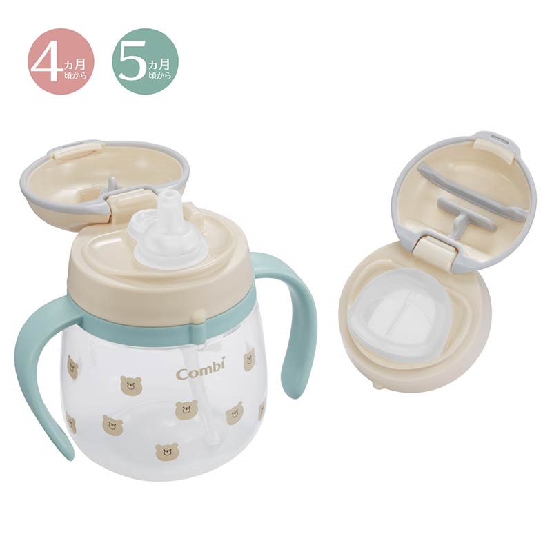 マグデビューに。ストローとコップ飲みが始められるスターターセット。 落ち着いた色合いで、大人もキュンとするかわいらしいデザインが登場。 ●セット内容: はじめてストロー 240…1個 はじめてコップパーツ…1個 ●はじめてのストロー飲みにチャレンジ。 くわえて押すだけで飲みものが出る、4ヵ月頃から“自分で飲める”ストロートレーニングマグ。 カプッとくわえるだけで飲みものが出る、コンビだけのストロー形状。 ふっくら乳首の根元とストローの先端形状で、吸う感覚を覚えられます。 ●コップ飲みにチャレンジ。 くわえたときだけ、飲みものが出る新形状の魔 法のコップ。 たおしちゃっても安心 ”こぼれなコップ形状” カプッとくわえるだけで飲みものが出る、コンビだけのコップ形状。 くわえたときだけスリットが開いて飲みものが出る、赤ちゃんにやさしい形です。