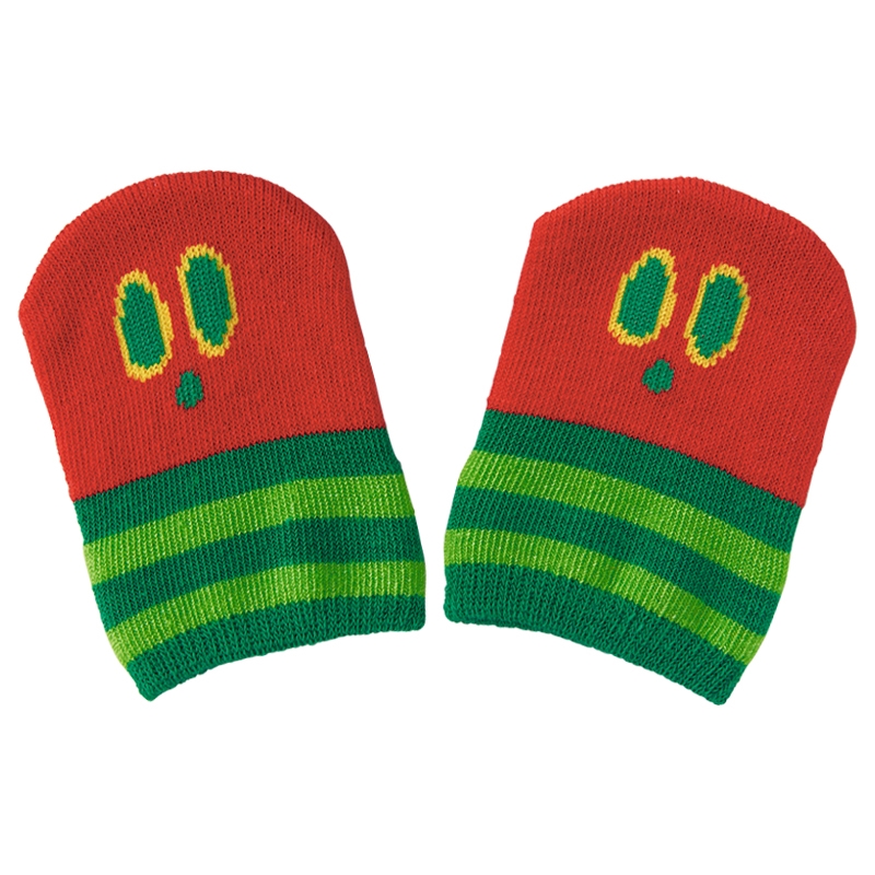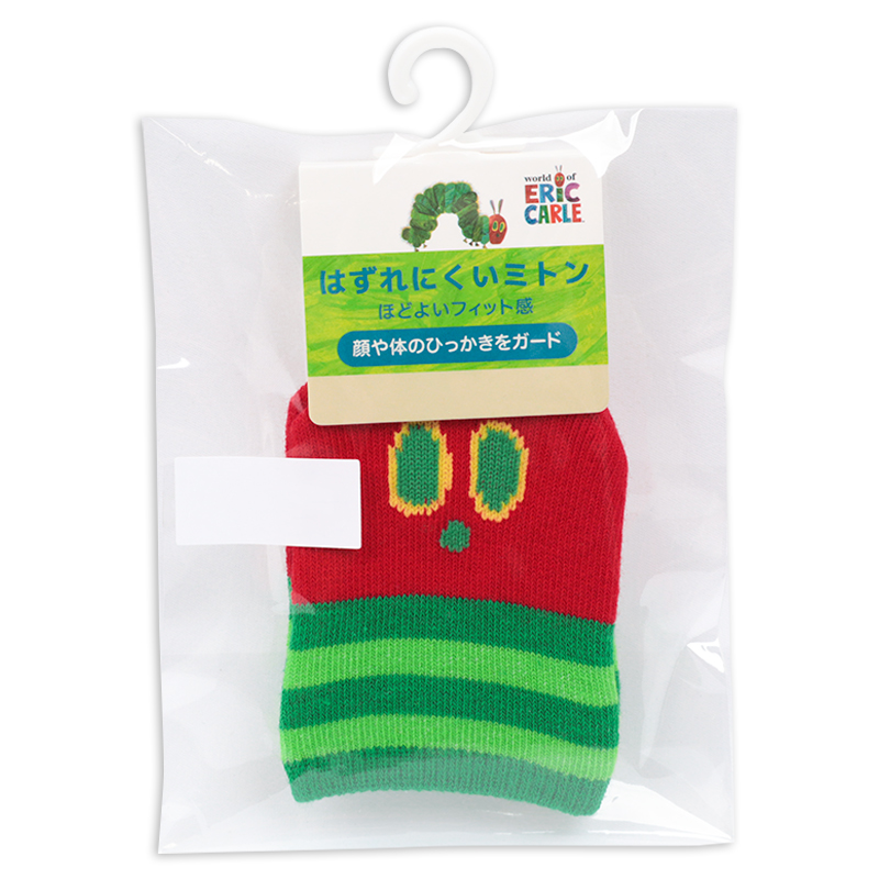 赤ちゃんが顔や身体を爪でひっかいて傷つくのを防ぎます。 絵本キャラクターとして人気のはらぺこあおむしのミトンです。 大きすぎず、新生児の赤ちゃんにちょうど良いサイズでフィットするため、はずれにくい仕様となっております。