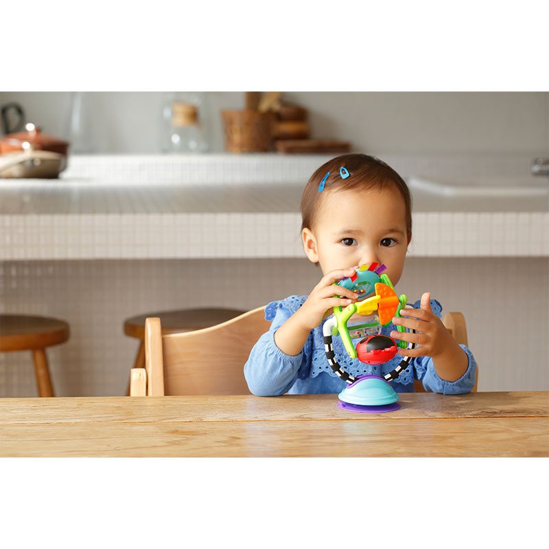 ●対象年齢:6ヵ月~ ●材質:ABS樹脂・ポリプロピレン・MBS樹脂・熱可塑性エラストマー・ポリエステル ●お手入れ方法:固くしぼった濡れ布巾で拭き、乾燥させてください。 ●注意事項: 保護者の方へ 必ずお読みください 思わぬ事故のもとになりますので、下記に注意してください 梱包材は開封後、直ちに捨ててください。 お子さまの誤飲・窒息など、不慮の事故につながるおそれがあります。 保護者の方の目の届く場所で使用してください。 破損・変形した製品は使用しないでください。 本来の用途以外には使用しないでください。 火気や暖房器具に近づけないでください。 ぶつけたり、こすったり、濡れたままで放置した場合、 他のものに色が付着する事がありますのでご注意ください。 表面に凸凹のある面や材質によっては吸盤が付かない場合があります。 内蔵電池は交換できません。