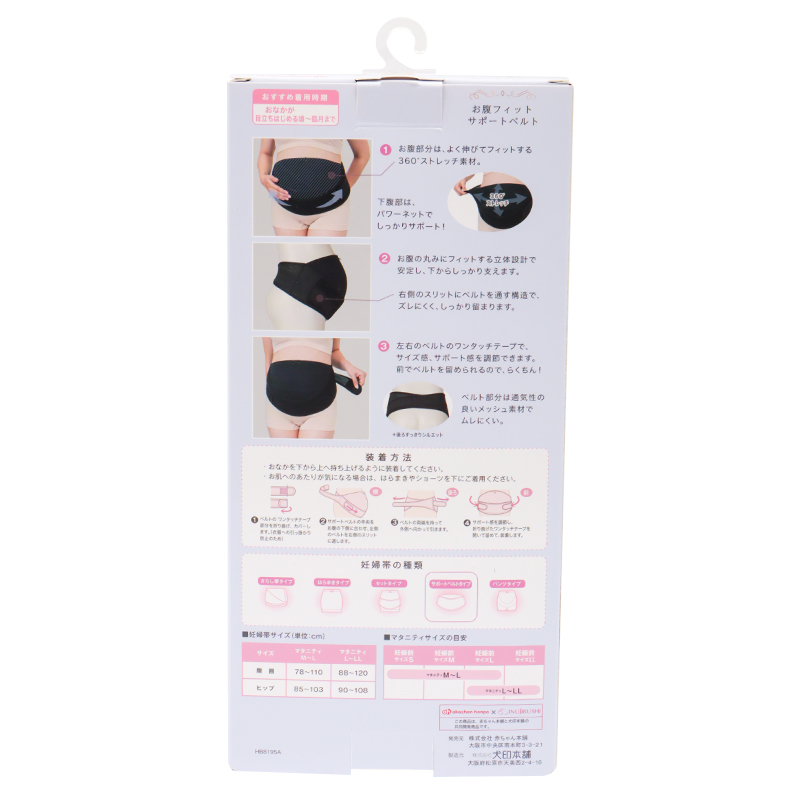 ●素材= 本体上部:ポリエステル92%・ポリウレタン8% 本体下部:ナイロン100% メッシュベルト部:ナイロン83%・ポリウレタン17% テープ部:ナイロン80%・ポリウレタン20% ●サイズ(約・cm)= M~L(腹囲78~110・ヒップ85~103)・L~LL(腹囲88~120・ヒップ90~108)