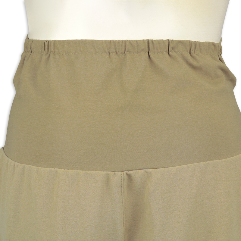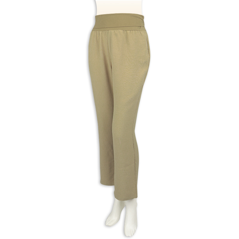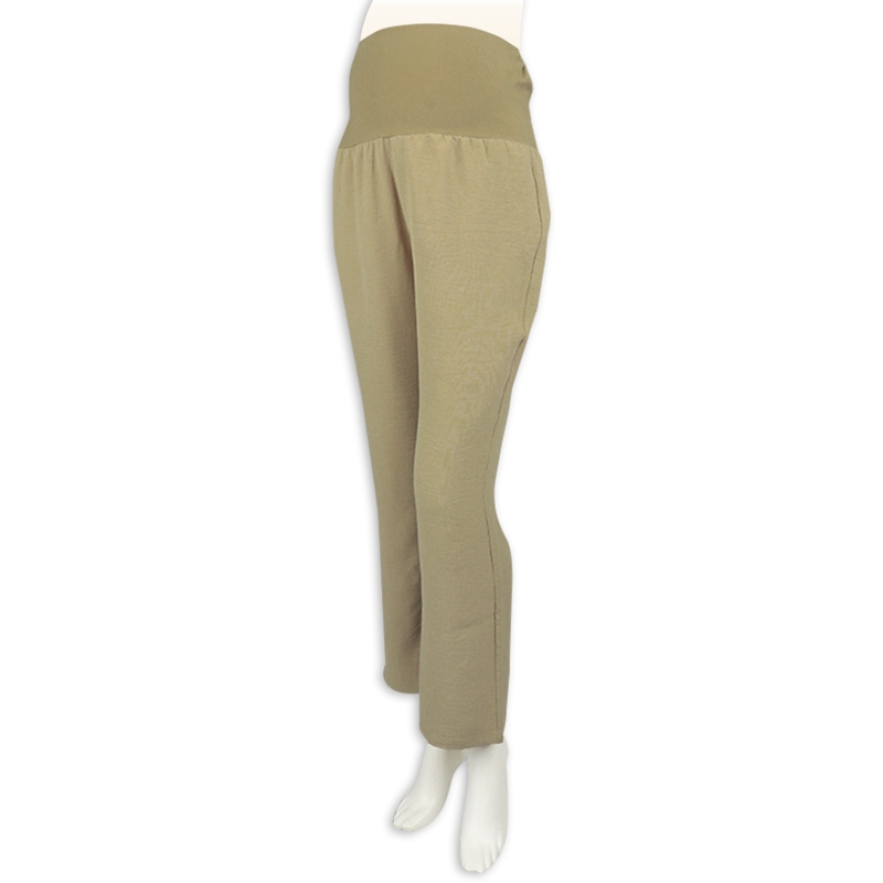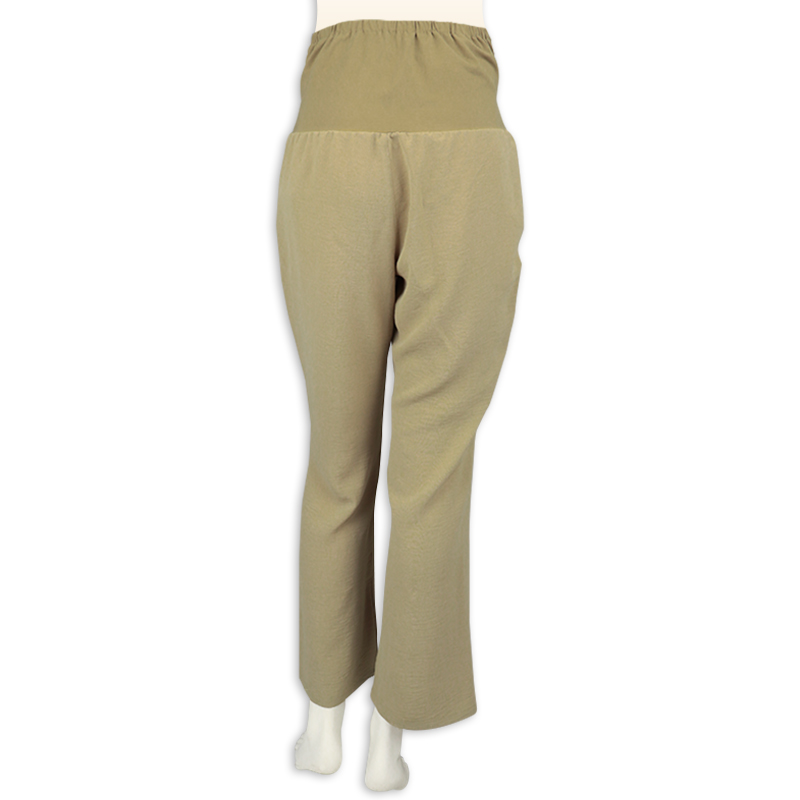 落ち感のある高見え素材で、らくちんなのにきれいめ。ほどよいウェーブ感でサラリとした肌触り。ギャザーを入れたストレートワイドシルエットはデイリーからお出かけまで幅広く使えます。お腹部分は程よいフィット感が気持ちいい天竺を使用。大きくなるお腹を締め付けません。ウエスト部分を折り返せば、妊娠初期から産後まで長くご使用いただけます。