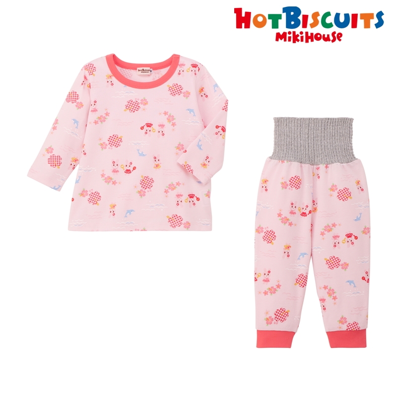 ●素材=タック天竺プリント ●品質=(上衣) 綿 100%、(リブ部分) 綿 73%、ポリエステル 27%、(パンツ) 綿 100%、(リブ部分) 綿 73%、ポリエステル 27%、(腹巻部分) 綿 98%、ポリウレタン 2% ●原産国=中国
