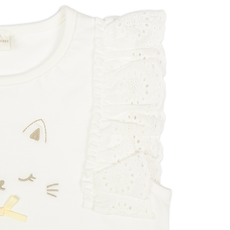 ●素材=本体 綿 61% ポリエステル 39% レース 綿100% 縁どり 綿61% ポリエステル37% ポリウレタン 2% ●サイズ(約・cm)= 100(身丈40・身幅30・裾巾36) 110(身丈43・身幅32・裾巾38) 120(身丈46・身幅34・裾巾40)