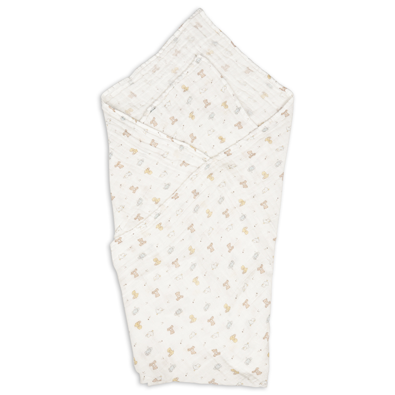 洗えば洗うほど使えば使うほど、やわらかくなり肌触りの良いモスリンガーゼを使用したおくるみです。 通気性も良く、ふわふわでやわらかいのが特徴です。 ベビーカーのひざかけ、お昼寝、湯上げタオル、折り重ねておむつ替えシートになど様々な用途に使用できます。