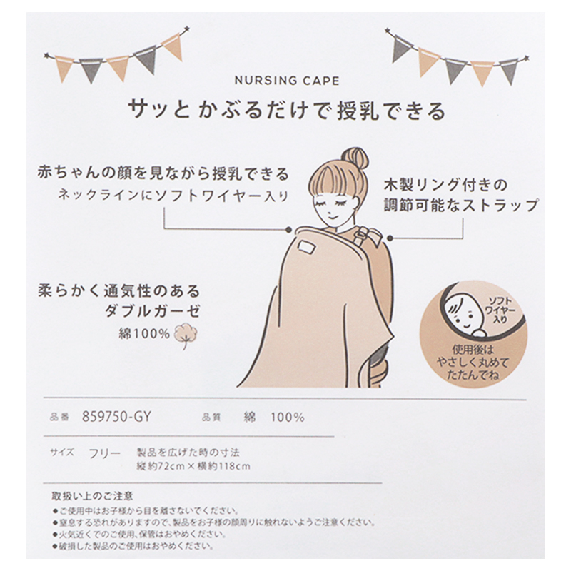 通気性に優れた綿100%のダブルガーゼを使った柔らかな授乳ケープ。 どこでも好きな場所でさっと授乳ができるエプロンスタイル。 ソフトワイヤーが首元を開き、赤ちゃんにママの笑顔を見せられます。 ナチュラルなイメージでギフトにもぴったりなアイテムです。