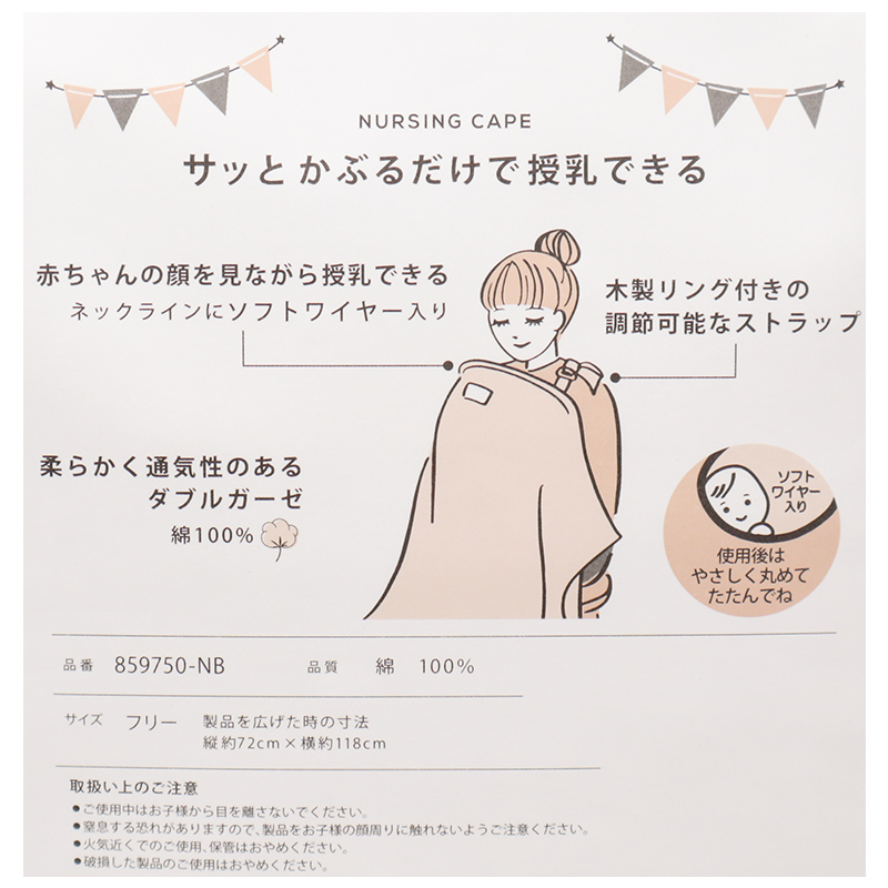 通気性に優れた綿100%のダブルガーゼを使った柔らかな授乳ケープ。どこでも好きな場所でさっと授乳ができるエプロンスタイル。ソフトワイヤーが首元を開き、赤ちゃんにママの笑顔を見せられます。ナチュラルなイメージでギフトにもぴったりなアイテムです。