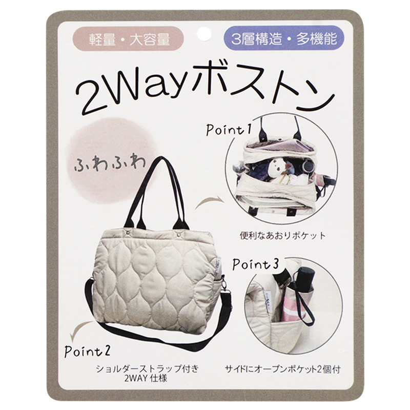 ショルダーストラップ多機能トート型2WAY仕様のキルティングボストンです。
