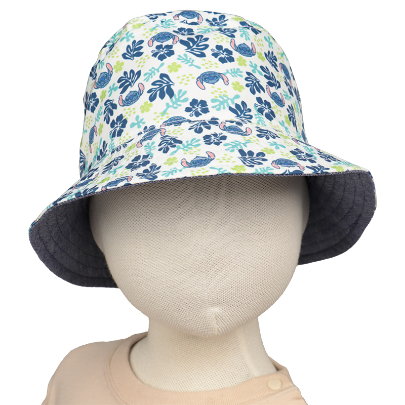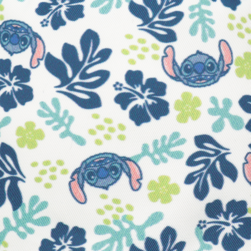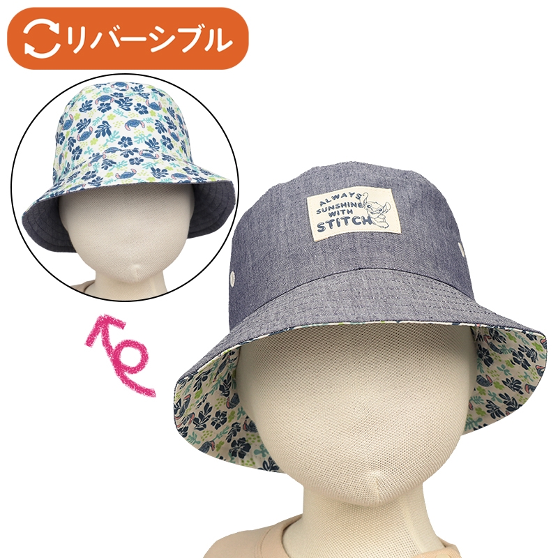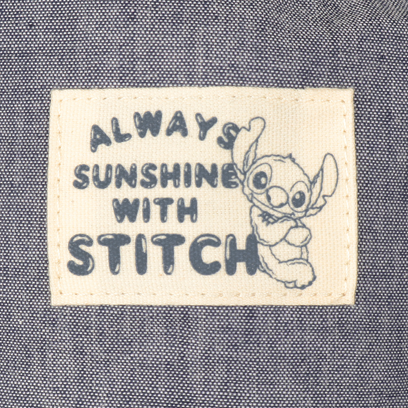 気分によって違う表情を楽しめる、リバーシブル仕様のアイテムです。 表面は、ネイビーを基調としたカジュアルなテイストに、スティッチのプリントネームが映えます。 裏面は、スティッチとボタニカルモチーフの爽やかな総柄で、おしゃれに仕上がります。