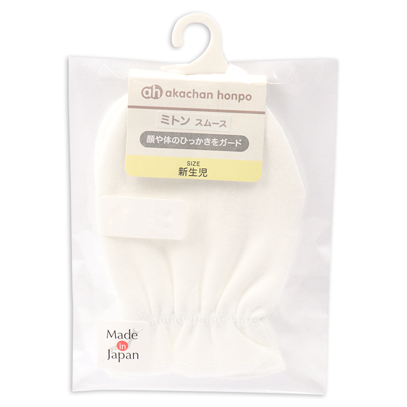 やわらかな肌触りのスムース生地のミトンです。 赤ちゃんが爪でデリケートなお肌を傷つけないようにやわらかなミトンを 着けてあげることをお勧めします。 赤ちゃんにやさしい綿100%のスムース生地を使用しています。