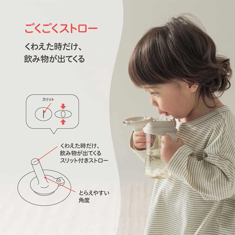 ・愛着のある母乳実感哺乳びん(※1)を使い続けられる 赤ちゃんが生まれた時から使っている母乳実感哺乳びんを、飲み口を付け替えることでお水やお茶を飲むときはマグマグとしても使えます。 授乳の時も、コップ飲み・ストロー飲みの時も、お子さまの成長の様々なシーンで赤ちゃんの飲むをサポートします。 ※1 プラスチック製 240ml。母乳実感哺乳びん プラスチック製 240mlとマグマグ成長実感 専用ボトルのみに使用いただけます。 ●赤ちゃんが飲みやすい飲み口 スリット付きストローでくわえた時だけ、飲み物が出てくる。 ストローはお口でとらえやすい角度です。 どんな姿勢でも最後まで飲めるおもり付きストロー(※2) ●振り回してもモレない(※3) くわえた時だけ、飲み物が出てくるスリット付きストローでモレない。 ●洗いやすい一体型パッキン パッキンは一体型なので洗いやすく、部品の付け忘れや紛失の心配もありません。 ●食洗機OK(※4) 食洗機で洗えます。 ●ボタンを押すだけ片手でらくらくワンタッチ開閉 赤ちゃんを抱っこしながらでも、片手で開け閉めして飲ませることができます。 ※2 誤嚥のおそれがあるので寝た姿勢で飲ませないでください。 ※3 モレないとは、使用時の環境や、誤使用、経年変化を除く。 ※4 業務用食洗機を除く。