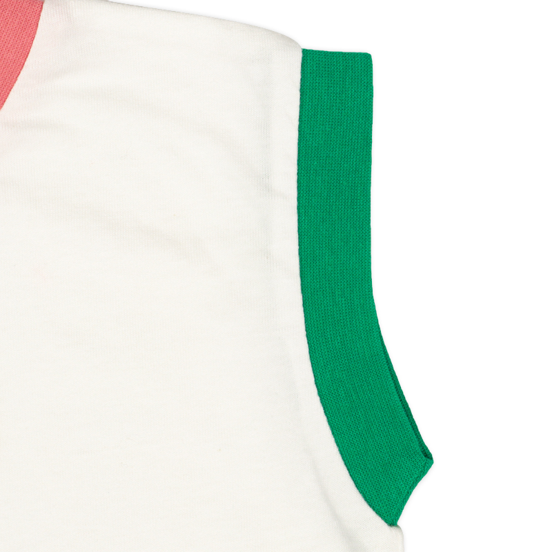 ●素材=[本体]綿100%[リブ部分]綿96%ポリウレタン4% ●原産国=中国 ●サイズ(約・cm)= 80(身丈35・身幅35・裾幅35) 90(身丈37・身幅36・裾幅36) 100(身丈41・身幅38・裾幅38) 110(身丈44・身幅40・裾幅40) 120(身丈47・身幅42・裾幅42)