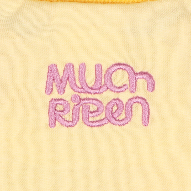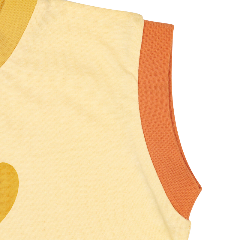 ●素材=[本体]綿100%[リブ部分]綿96%ポリウレタン4% ●原産国=中国 ●サイズ(約・cm)= 80(身丈35・身幅35・裾幅35) 90(身丈37・身幅36・裾幅36) 100(身丈41・身幅38・裾幅38) 110(身丈44・身幅40・裾幅40) 120(身丈47・身幅42・裾幅42)