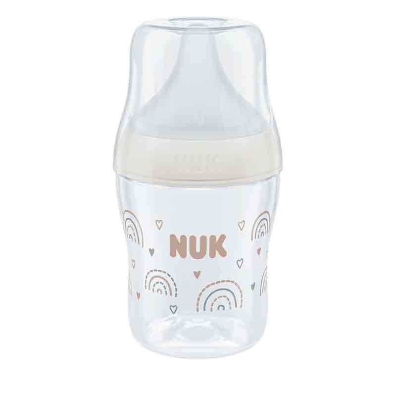 98%の赤ちゃんがいやがらずにのめました。 ちゃんと飲んでくれるかな、熱くないかな。そんな小さな不安に寄り添うのがNUKのPERFECT MATCH。70年近く赤ちゃんのことを研究しつづけたドイツ生まれのほ乳びんです。 ・おっぱいに近い質感&かたちを追求 ・飲み頃を色でお知らせ、適温確認目盛り付き ・広口だからお手入れ楽々 ・ドイツの病院で最も選ばれているほ乳びん 本製品には、S(丸穴・0カ月から)のニップルが付属しています。 ●ニップルの特徴 ・大きく口をあけて飲める広口設計 ・どの角度からも違和感なく飲める ・サラサラやわらか素肌みたい
