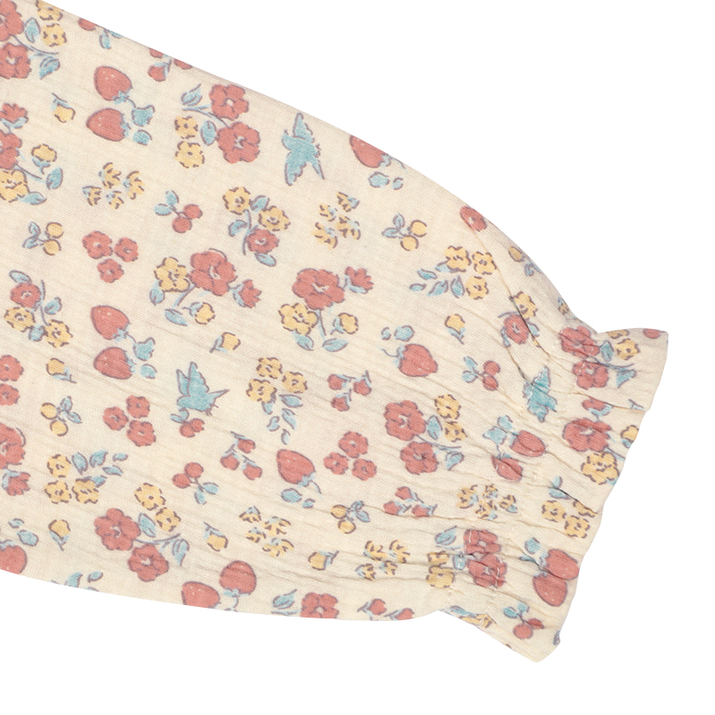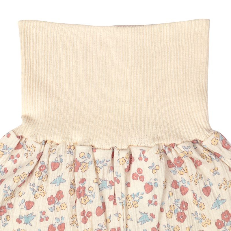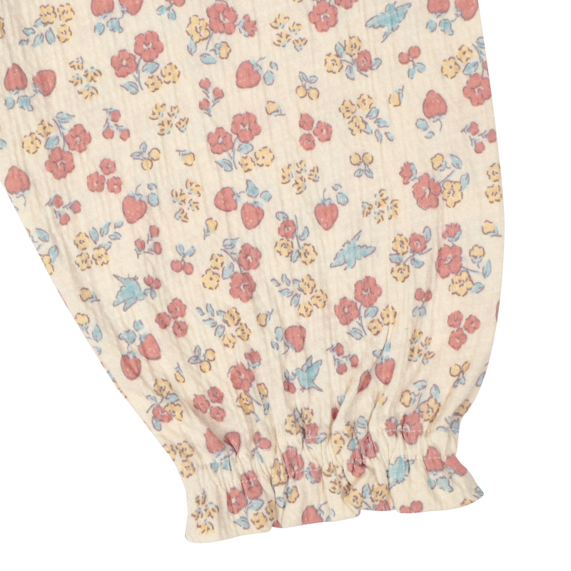 ベビー女児用、秋向けお着替え応援パジャマのご提案です。 素材は伸縮性があって着心地が良い、シャーリング天竺です。 前後どちらでも着られる仕様や、寝ている間にも動かしやすいラグラン袖、 お腹が出にくい深い股上設計と優しい腹巻き付きなどこだわりが詰まった商品になっています。 クリーム地にお花の総柄です。