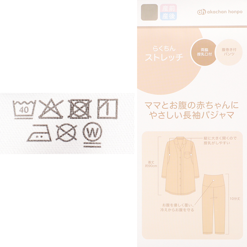 やわらかで着心地がよく、気持ちいい素材のマタニティパジャマ。 ストレッチ性もあり、体の動きに合わせて快適フィット。大きく開く授乳口付きで授乳が楽ちん。 パンツはおなかをすっぽり包むウエスト仕様。めくれても、おなかを冷やさない腹巻付き。 腹巻部分には穿き心地、肌触りの良いストレッチの効いたニット素材を使用。 スナップボタン不使用、脇部分のスリットタイプ授乳口なので授乳もしやすく、見た目もすっきり。