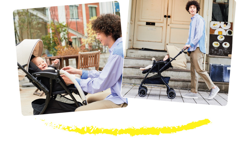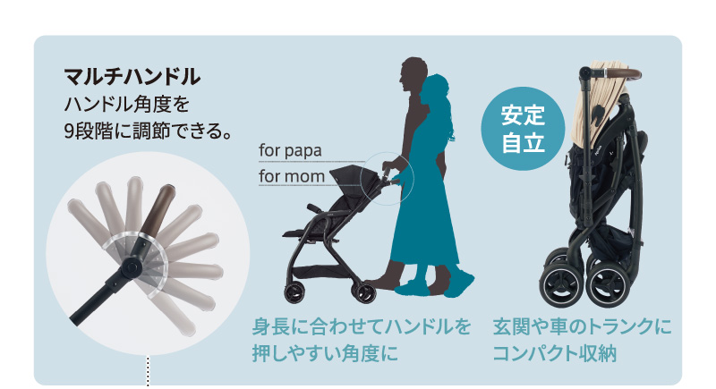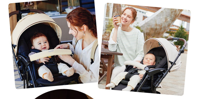 赤ちゃんの様子を見ながら、ベストポジションに片手で簡単リクライニングが可能