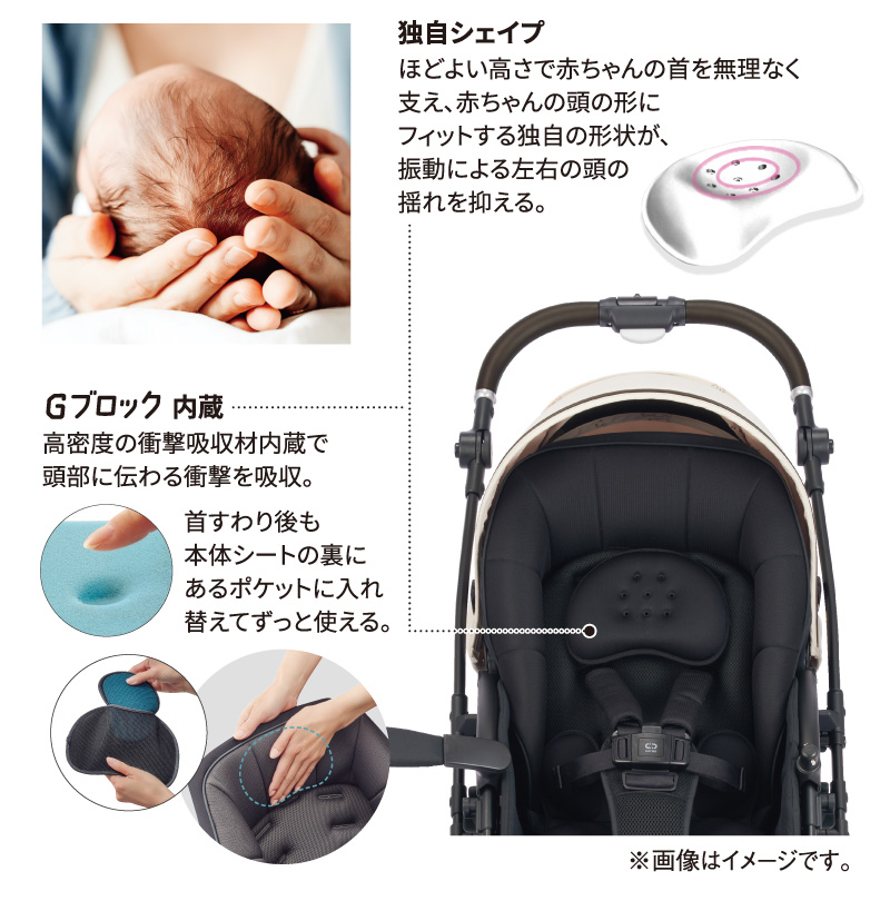ヘッドパッドで赤ちゃんの頭と首をしっかり守ります。
