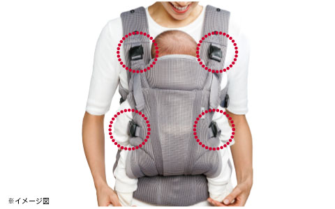 新生児の赤ちゃんが抱っこひもの中で丸まって苦しそうとか、赤ちゃんが大きくなって、ママやパパが腰痛に悩まされるとか、そんな不安や悩みのない抱っこのために。