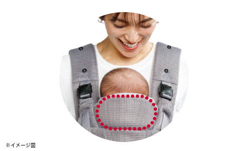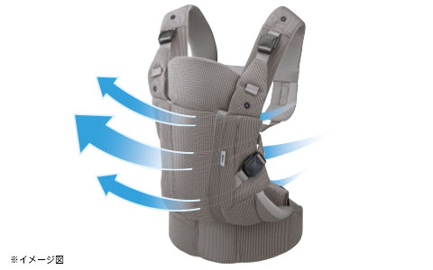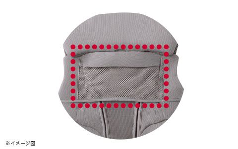 2種類のメッシュを組み合わせ、赤ちゃんが汗をかきやすい背中の部分に穴が大きいメッシュを採用しました。