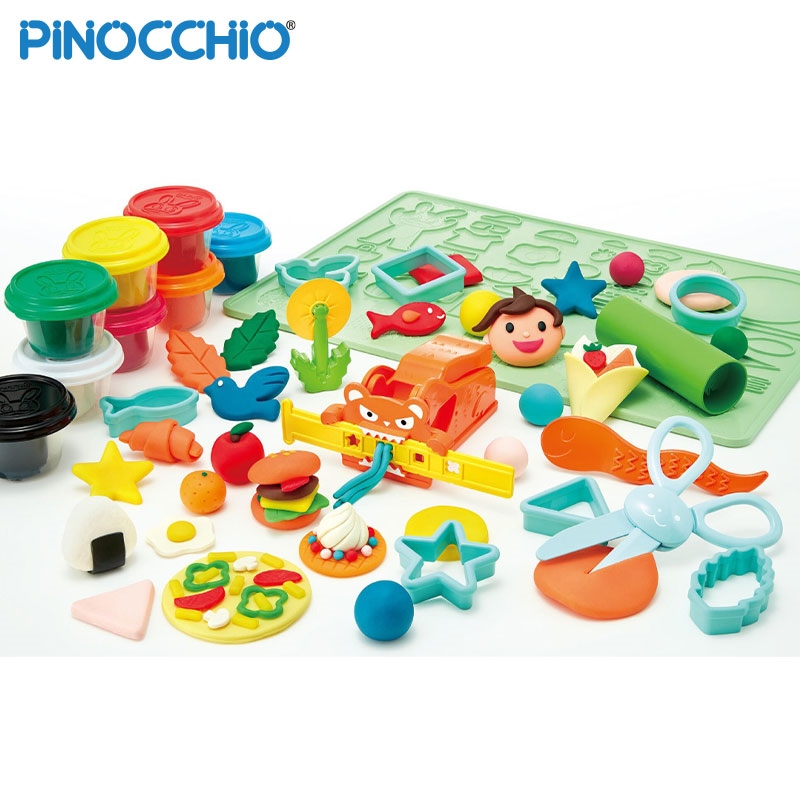 ●対象年齢:3歳~ ●セット内容: ・抜き型×7種 ・くまさんしぼりき(本体)×1 ・くまさんしぼりき(プレート)×1 ・おおきなねんどぅーばん×1 ・たんぽぽカッター×1 ・リスさんのばしぼう×1 ・うさぎさんはさみ×1 ・へびさんヘラ×1 ・ねんど40g×8色(黒・白、青、黄色、マゼンタ、みどり、赤、オレンジ) ●使用電池:なし