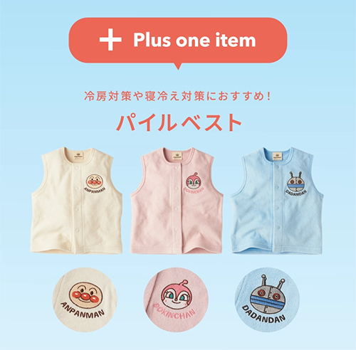 お子様に人気のアンパンマンキャラクターのパイルベストです。 アンパンマンキャラクターが左胸にかわいらしく描かれたデザインになっております。 表地には綿80%、ポリエステル20%の生地を使用しております。 なまえネームつき。