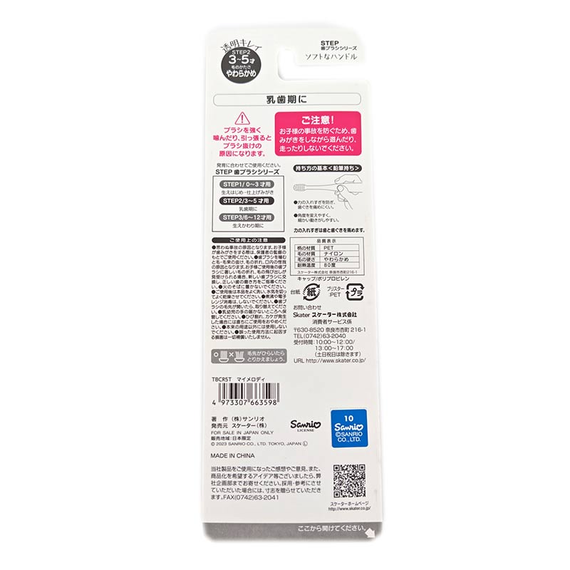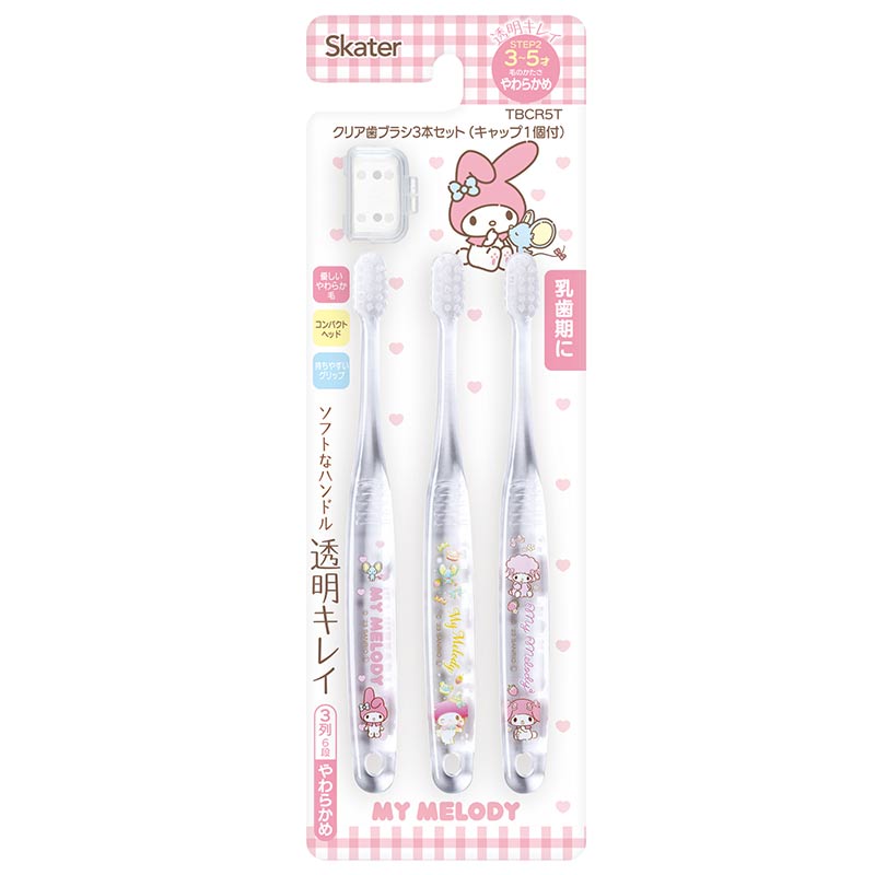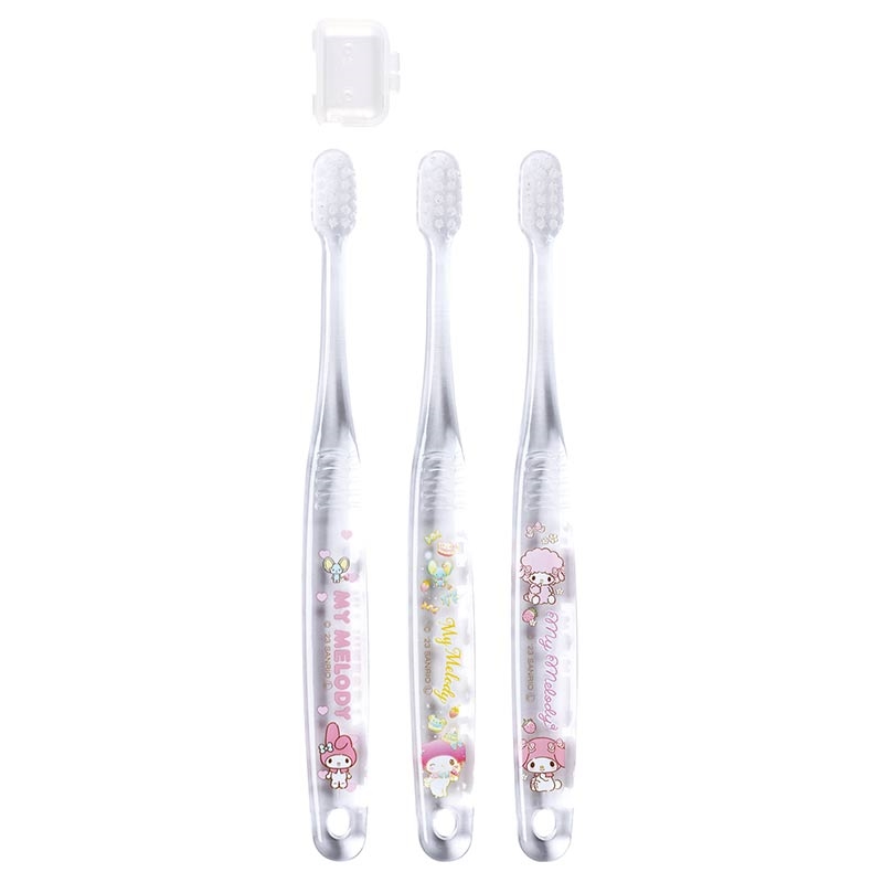 3本セットだから、取り替え時期にも困らない。 透明感のあるクリアなボディも可愛らしい。 乳歯期に歯みがきの習慣をつけておくのは大切なことですね。 かわいいキャラクターと一緒なら毎日の歯みがきも楽しくなること間違いなし。 毛の硬さはやわらかめです。奥まで磨きやすいコンパクトヘッド。 仕上げみがきしやすいロングネック。 持ちやすいグリップ。 キャップ付きなので、携帯や旅行などに便利 (c)SANRIO