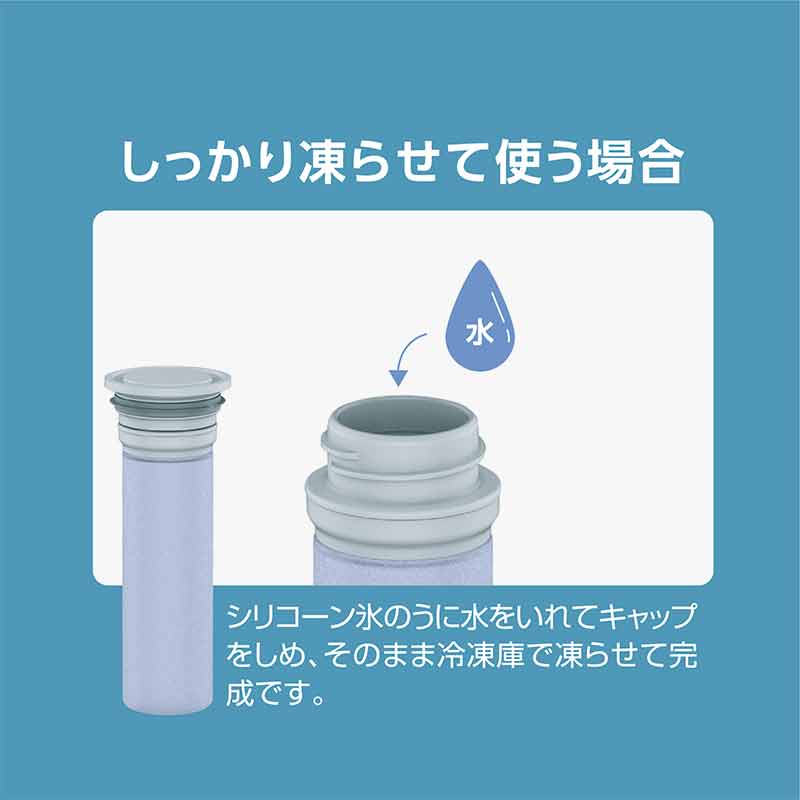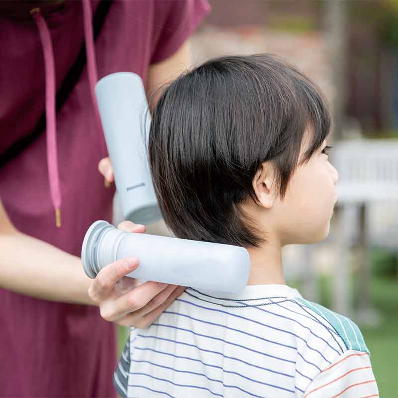 お子様の熱中症対策にもおすすめ。 持ち運べてどこでも瞬時にクール。 ステンレス真空断熱構造でしっかり外気温を遮断し、氷のうの冷たさ長持ち。 氷のうはシリコーン製だから肌あたりがいいシンプルな構造で、お手入れがしやすく丸洗いができる 。 涼し気なカラー3色から選べます。