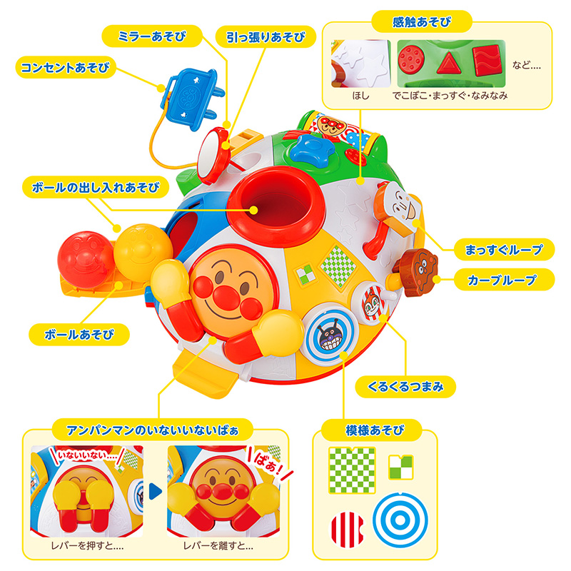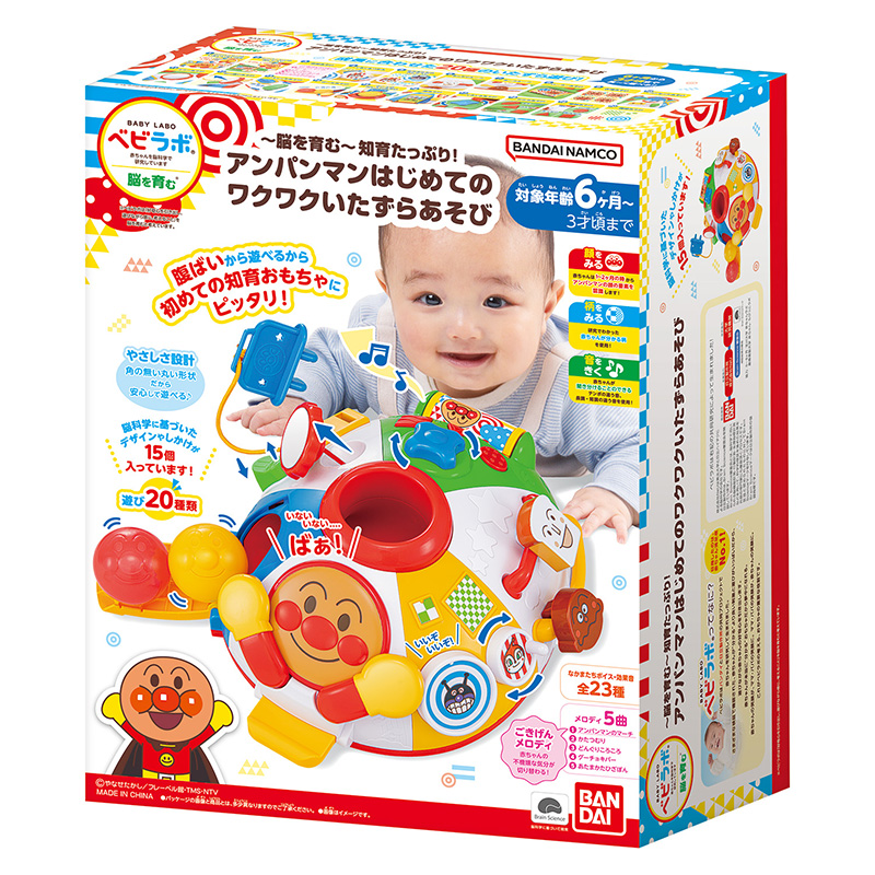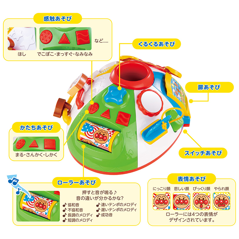 ●対象年齢:6ヵ月~ ●使用電池:単3×2本(別売) ●メロディ5曲・なかまたちボイス、効果音全23曲 ●パッケージサイズ(約・mm):幅270×高さ350×奥行130 (C)やなせたかし/フレーベル館・TMS・NTV