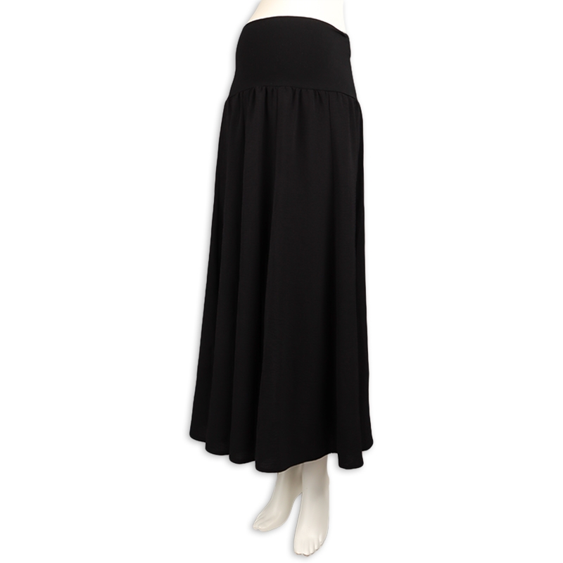 軽く、表面感がある素材を使用したフレアスカートです。 ベーシックなデザインなのでどんな上衣とも合わせやすいです。 ウエスト部分を折り返しても着用いただけますので 妊娠初期のおなかのあまり出ていない時期や産後にも活躍できる商品です。