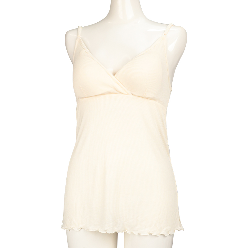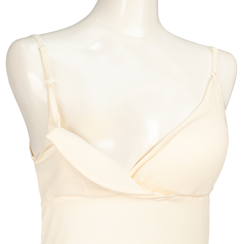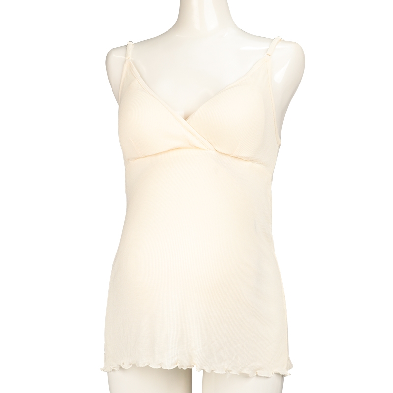 素材は横へのストレッチに富むリブ編みを採用いたしました、着用時や着用後で快適にご使用いただけます。 妊娠がわかってから授乳期まで長く使えます。 1体型カップで1枚で着られます。 クロスオープンタイプなので片手でさっとらくに授乳できます。 洗濯ネームは外側へ付けています。