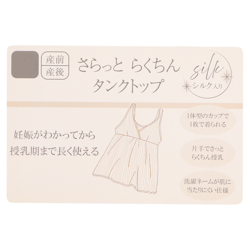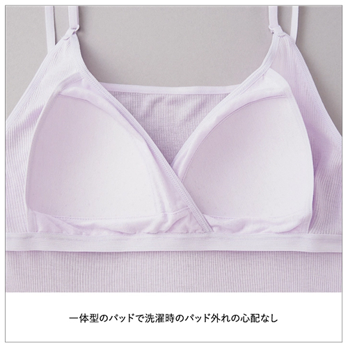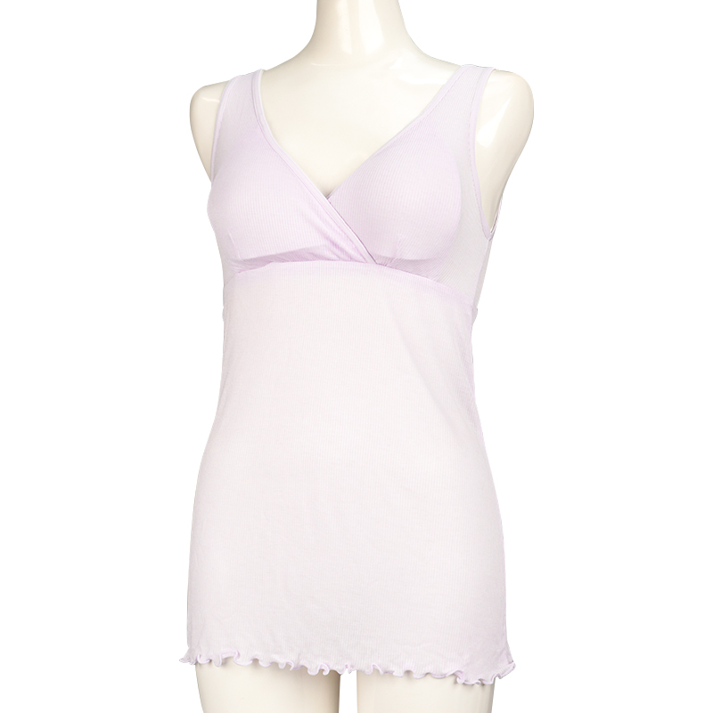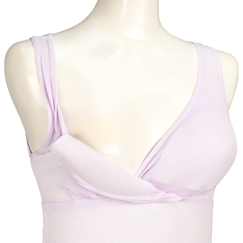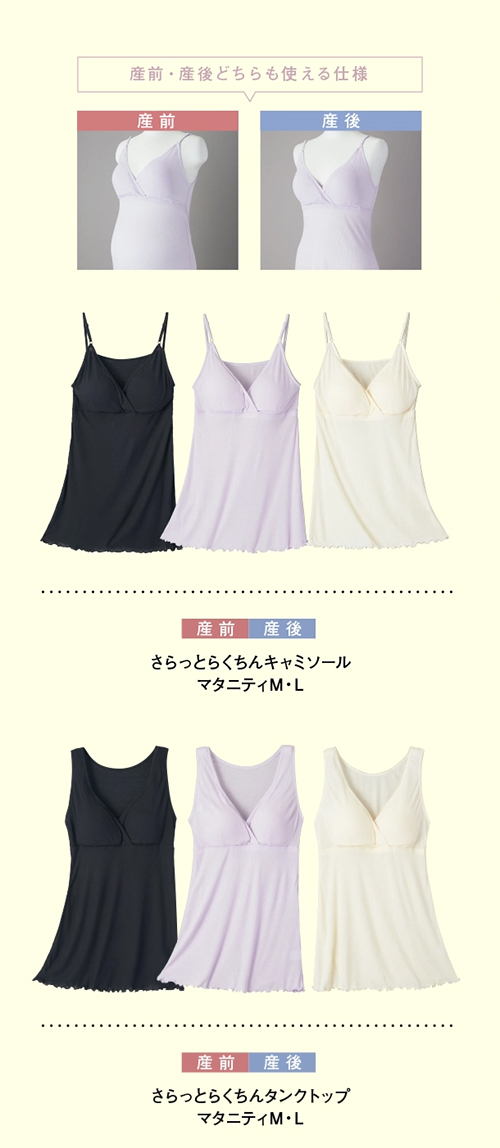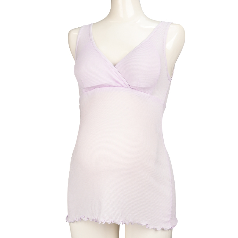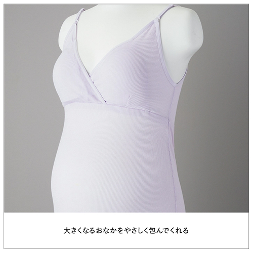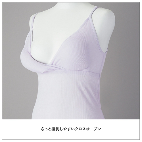 素材は横へのストレッチに富むリブ編みを採用いたしました、着用時や着用後で快適にご使用いただけます。 妊娠がわかってから授乳期まで長く使えます。 1体型カップで1枚で着られます。 クロスオープンタイプなので片手でさっとらくに授乳できます。 洗濯ネームは外側へ付けています。