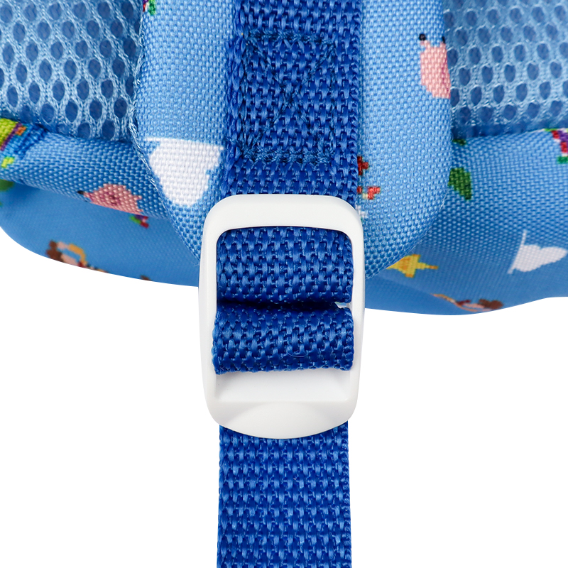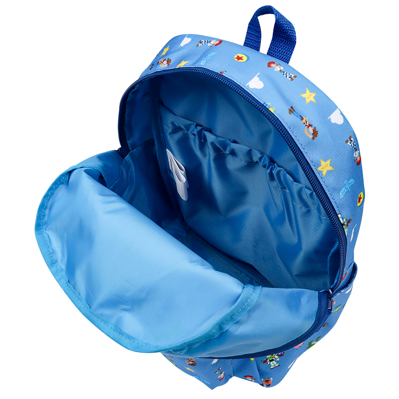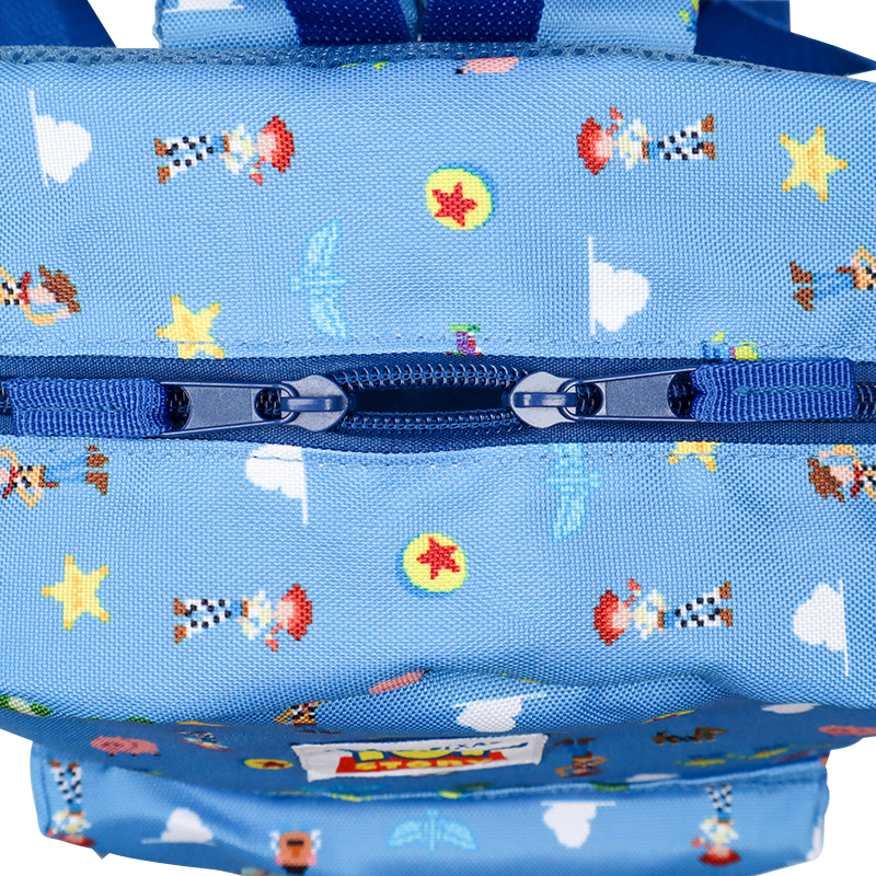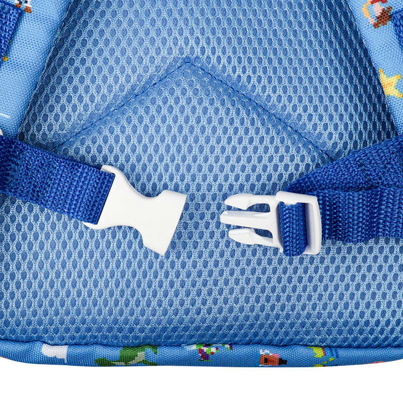 ダブルファスナーなので、開閉が楽です。 フロントと両サイド、内部にポケットがついているので、遠足などで荷物が増えても仕分けしやすいです。 チェストベルト付きなので、お子様が走り回ってもずり落ちません。