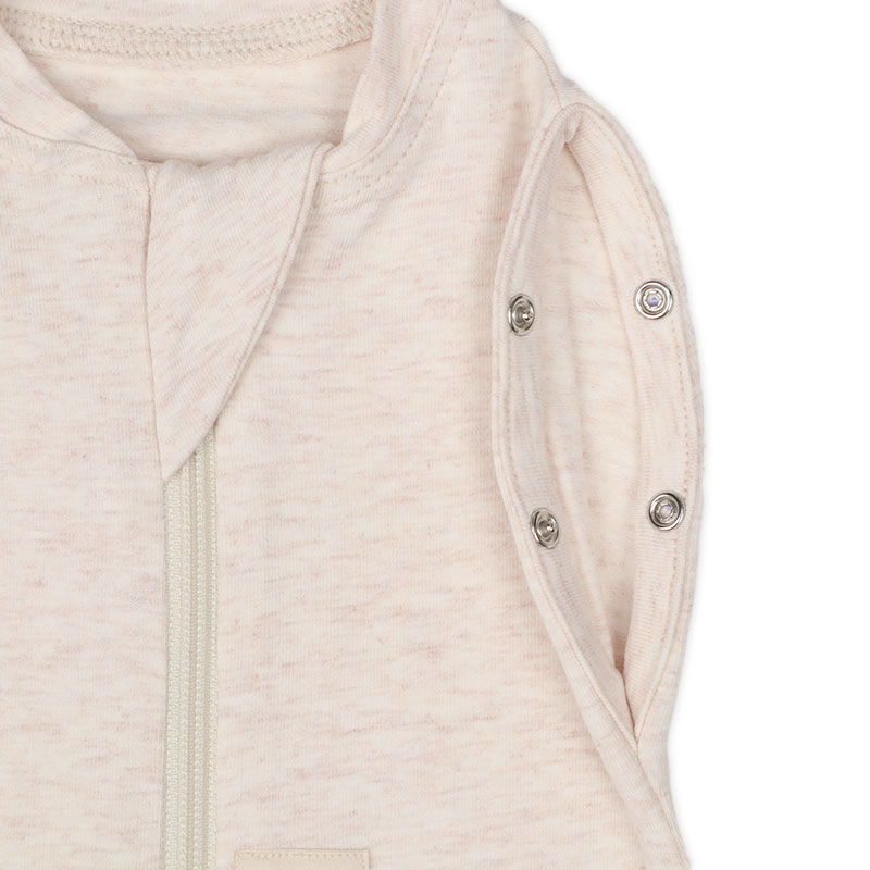 寝返りの兆候が出てきたら、スナップボタンを外して腕出しスタイルの寝袋に変更可能。