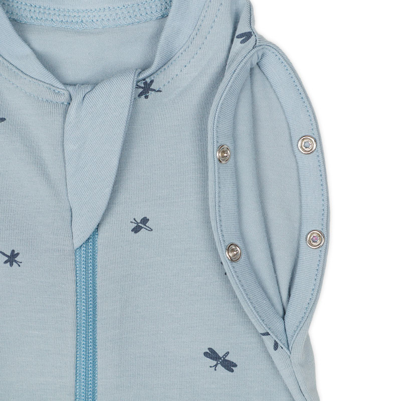 寝返りの兆候が出てきたら、スナップボタンを外して腕出しスタイルの寝袋に変更可能。
