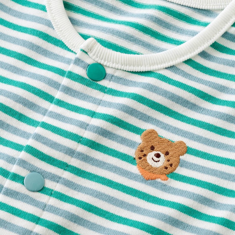 シンプルながらもカラフルなボーダーなので、おうちでもお出かけでも着ていただきやすいデザインです。