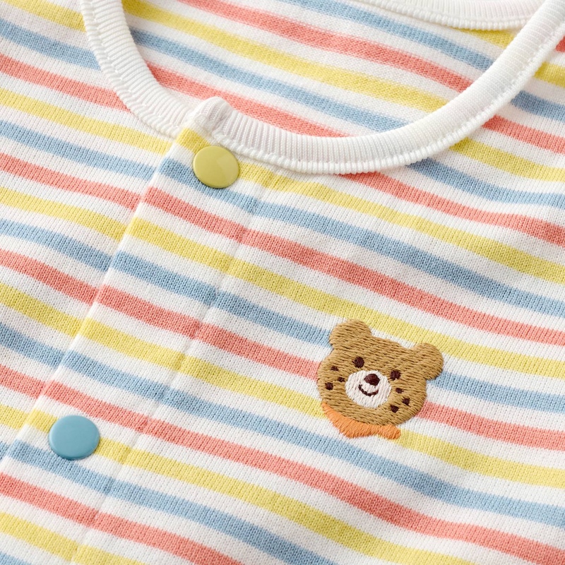 シンプルながらもカラフルなボーダーなので、おうちでもお出かけでも着ていただきやすいデザインです。
