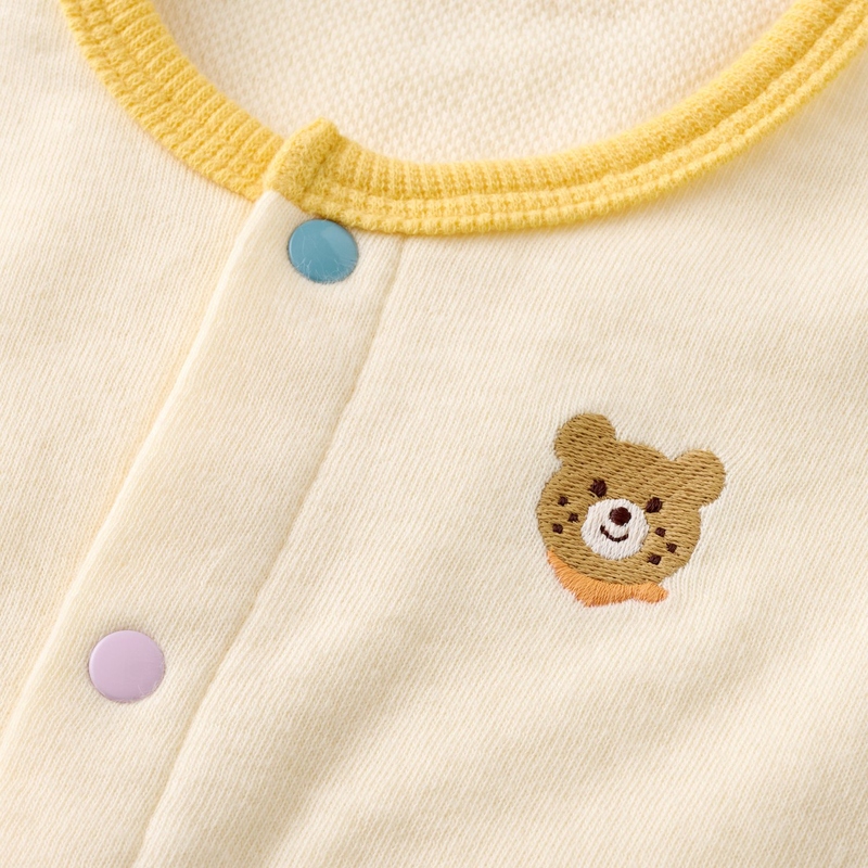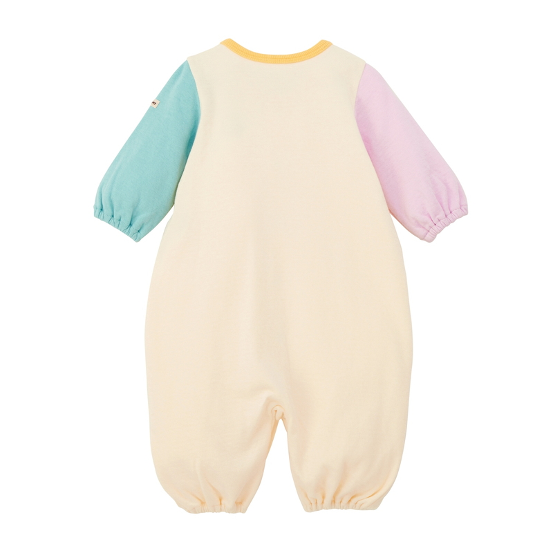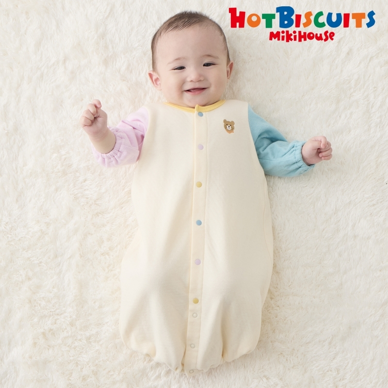 ミキハウス ホットビスケッツの接結カノコ素材2WAYオール。 胸元にあるワンポイントのビーンズがポイント! シンプルながらも袖や襟のマルチカラーで、おうちでもお出かけでも着ていただきやすいデザインです。 ユニセックスで着ていただけるカラー。 丈夫なバインダーネックで首元がよれにくく、 お洗濯を繰り返しても型崩れが少ない仕様です。 [素材感] ふっくらとしたやわらかな肌触りが特徴の接結カノコ素材 風合いが良く適度な保温性があります。 ……………………………………… 伸縮性:あり 生地:綿100% 袖丈:長袖 おすすめ着用シーズン:春秋冬 ……………………………………… ●ドレス型:おむつ替えの機会の多い新生児期に裾をめくりあげるだけでおむつ替えができるので便利 ●カバーオール型:手足が活発に動くようになってきたら、股部分のスナップボタンで足元をズボンタイプに 《HOT BISCUITS ーホットビスケッツー》 ミキハウスホットビスケッツは、”Good Quality”がキーワードのブランド。 子どもたちには毎日ごきげんに、楽しく健やかに 過ごしてほしいから、 お子さまのための良いものづくりを大切にしています。 男の子も女の子も子どもらしく、おしゃれに可愛く着られるアイテムがいっぱい。 赤ちゃんからキッズまでの子ども服・ベビー服・ベビー用品等を幅広くご用意しています。 春夏秋冬の季節に合わせた、ご出産祝いやプレゼント、ギフトもおすすめです。