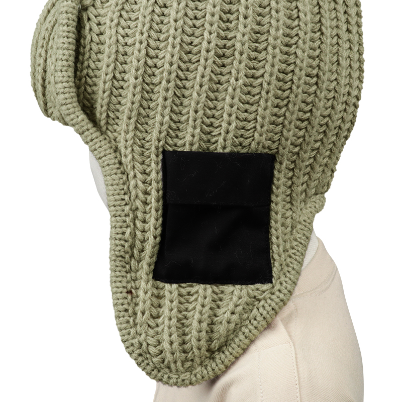 ●耳を冷たい風からしっかり守ってくれる耳当て付。