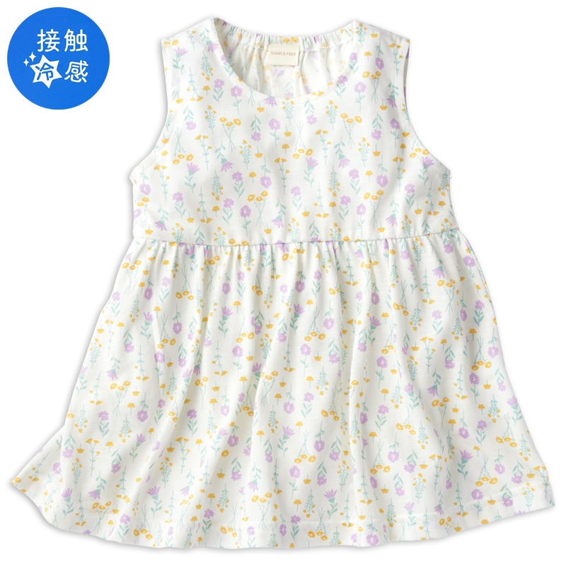 ベビー盛夏向け、女児用総柄ワンピースのご提案です。 着回しの良い定番のワンピース型で夏に大活躍間違いなし。 夏に嬉しい肌に当たると冷っとする接触冷感機能付き。 レモン柄と花柄の2柄、サイズは 70/80/90/95cm の4サイズ展開です。