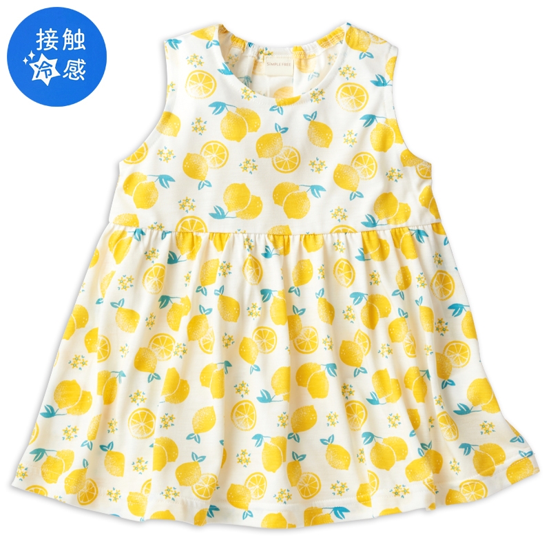 ベビー盛夏向け、女児用総柄ワンピースのご提案です。 着回しの良い定番のワンピース型で夏に大活躍間違いなし。 夏に嬉しい肌に当たると冷っとする接触冷感機能付き。 レモン柄と花柄の2柄、サイズは 70/80/90/95cm の4サイズ展開です。