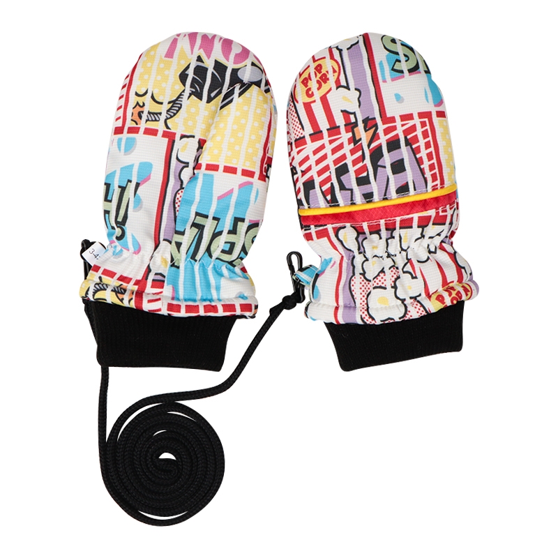 ●通園やお外遊びに大活躍のナイロミトン。内側は暖かいボア付、手口にはリブカフスを使用して雪や冷たい風をガード出来ます。