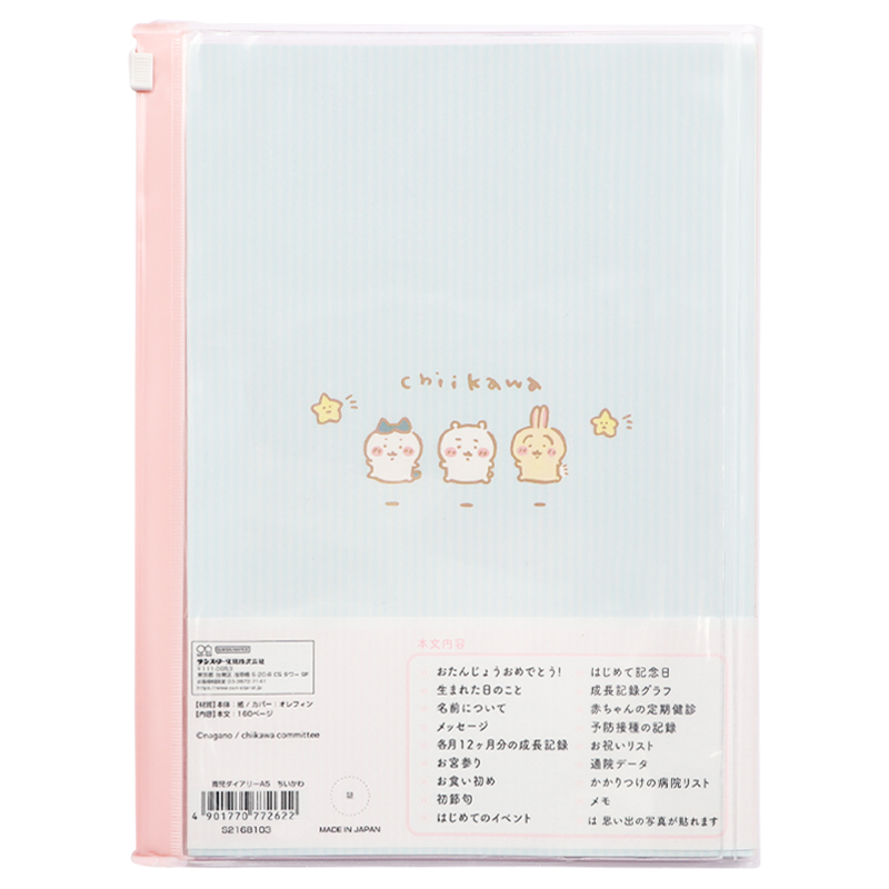 ちいかわ ベビーのママ、パパ向けアイテム。 これからママ、パパになる方へのプレゼントにも。 お子様の成長記録をサポートします。 スライドケース付きだから、カードや母子手帳を収納できる。 cnagano/chiikawa committee