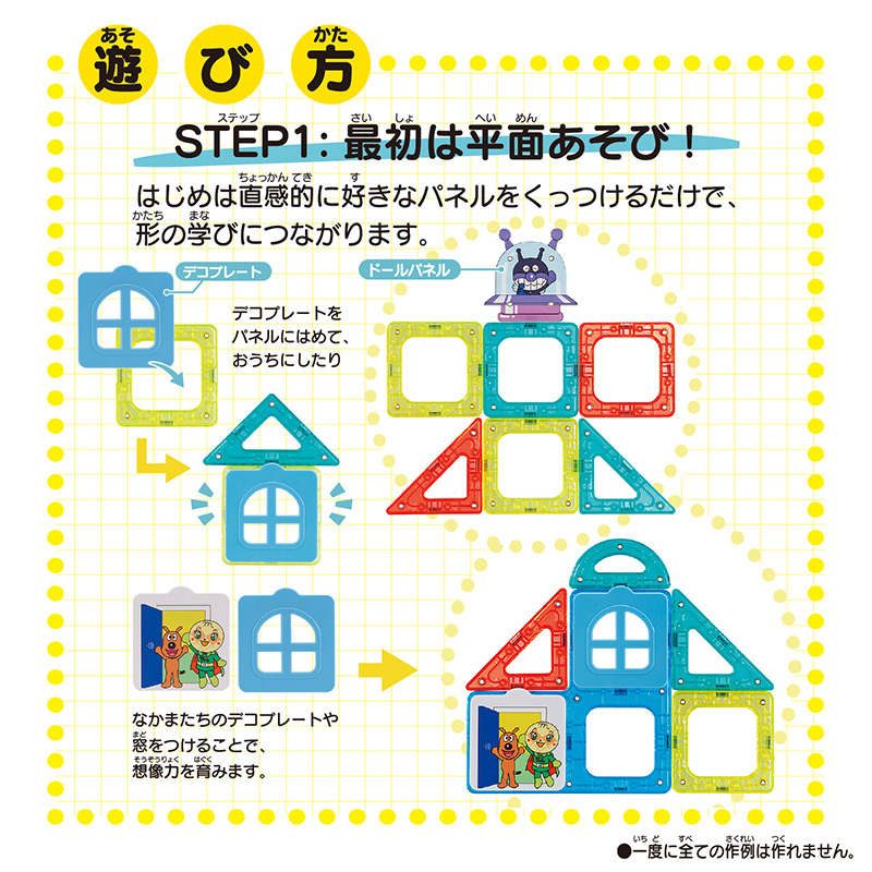 ●対象年齢:1.5歳~ ●パッケージサイズ(約・mm):幅330×高さ240×奥行70 ●同梱内容: [マグパネル]11パーツ [ドールパネル]3パーツ [デコプレート]4パーツ ●使用電池:なし (C)やなせたかし/フレーベル館・TMS・NTV
