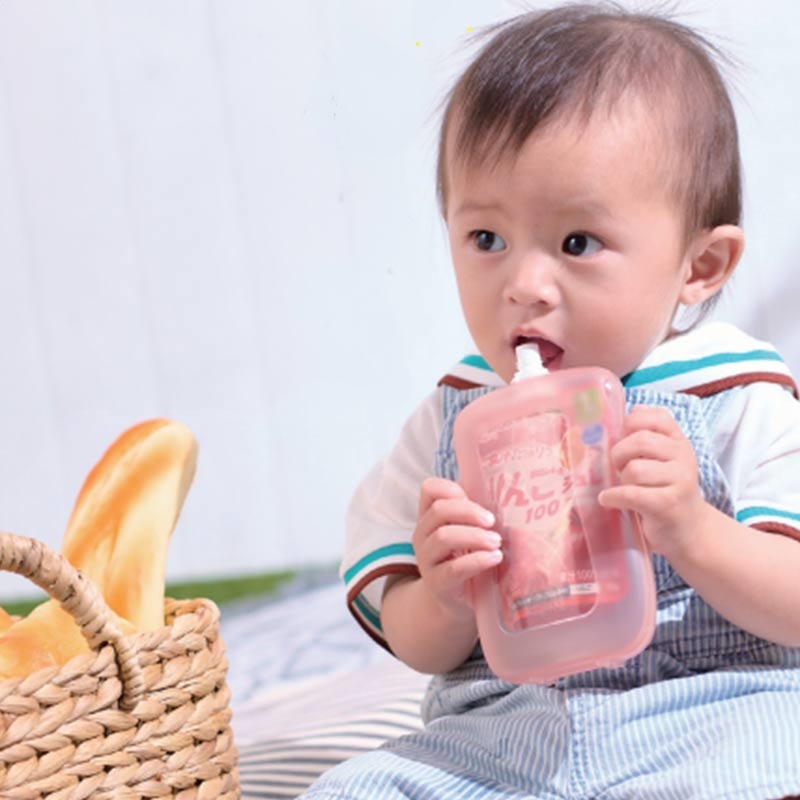 手で強く握ってジュレがこぼれるのを防止するパウチケースです。 パウチを直接持たないから、あふれ出す心配がありません。 両サイドの突起で指がすべりにくく上手に持てます。押し出すのではなくしっかり吸って飲む練習もできます。 いろんなサイズのジュレに対応。 でっぱりに指をかければお子さまでももちやすい。