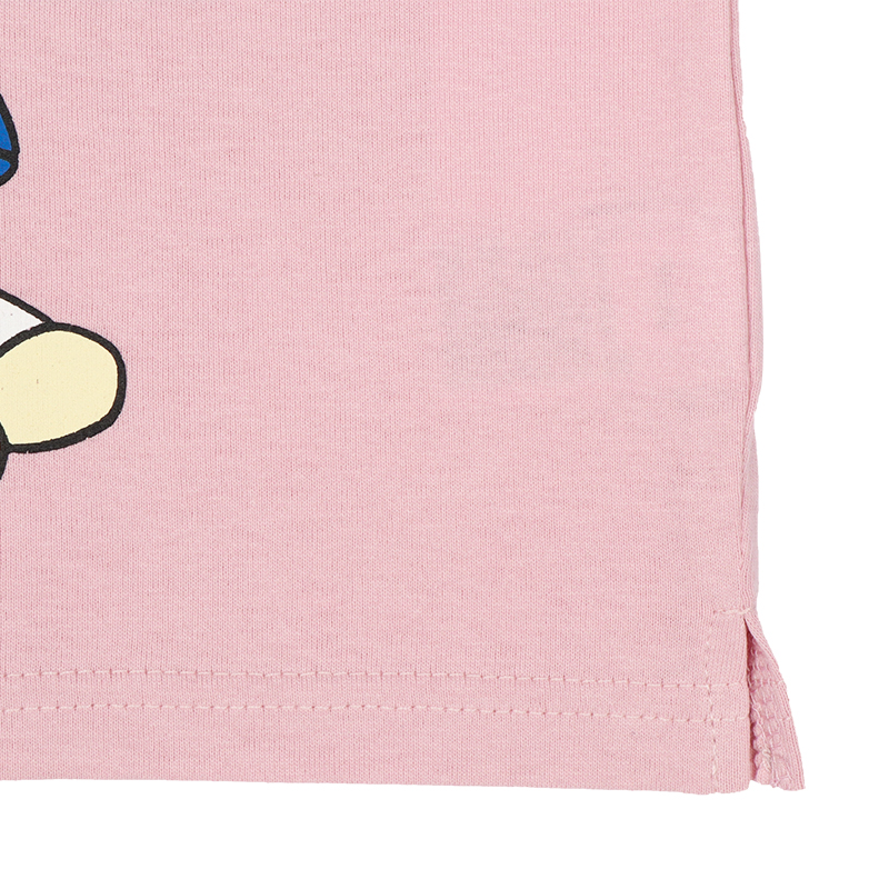 ●素材=[本体]綿100%[リブ部分]綿95%ポリウレタン5% ●原産国=中国 ●サイズ(約・cm)= 80(身丈33・身幅37・袖丈6.5・裾幅37) 90(身丈35・身幅35・袖丈7・裾幅38) 100(身丈39・身幅39・袖丈8・裾幅40) 110(身丈42・身幅42・袖丈8.5・裾幅42) 120(身丈45・身幅44・袖丈9・裾幅44)