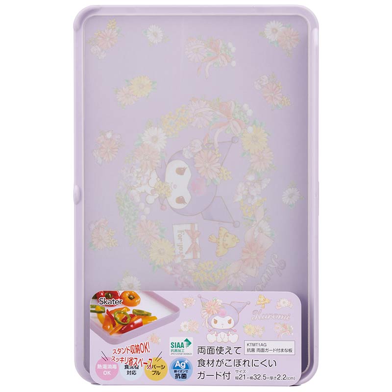 リバーシブル。 両面ともガード付&柄入りで、裏表同様に使えます 食材をこぼしにくく、鍋やボウル、食器などに移しやすい、L型ガード。 カット面が傾斜になっていて、ガードが深めなので、食材をためやすい。 自立するので、場所を取らずに収納できます。 熱湯消毒、食洗機対応なので清潔に使えます。 (c)SANRIO